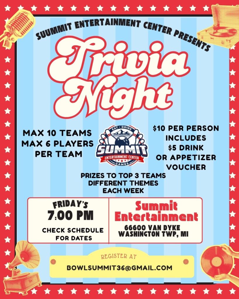 Join us at the bar for bingo! This event is for those aged 21 and older and will feature prizes and raffles. Teams must arrive and sign up before the event, so get there early! Sign-ups begin at 5 PM, and the game starts at 7 PM. The entry fee is $10 per person. If a team has fewer than six members, they will be combined with others to form teams of six, unless we have a total of 10 complete teams. Each week, enjoy themed music, trivia, mini games, and great prizes. Gather your teammates and join us for an entertaining night of trivia!